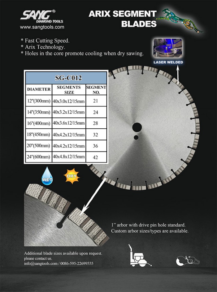 Совет SANG: Всегда проверяйте совместимость вашей пилы с сухой или влажной резкой и выбирайте полотно соответствующим образом.
