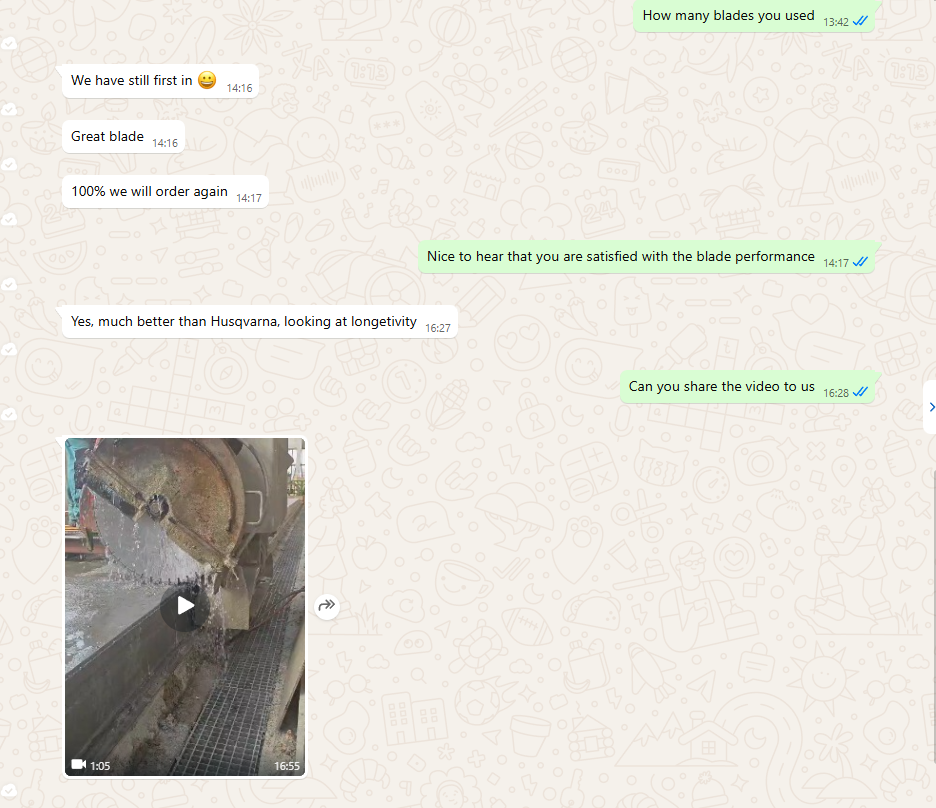 Диск использовался для резки плотных железобетонных плит, армированных сталью, где важны как эффективность, так и долговечность. Клиент остался очень доволен результатом, отметив постоянную остроту лезвия и долгий срок службы.