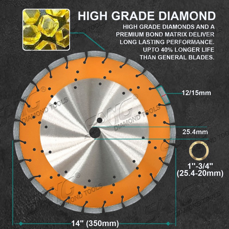 САНГ 14-дюймовый диск Arix для бетона Разработано для профессиональных подрядчиков, которым важна точность, долговечность и скорость. Этот диск, разработанный специально для резки железобетона, оснащён передовой технологией сегментирования Arix для равномерного распределения алмазов, что обеспечивает более быструю резку, длительный срок службы диска и максимальную эффективность при работе с прочными строительными материалами.